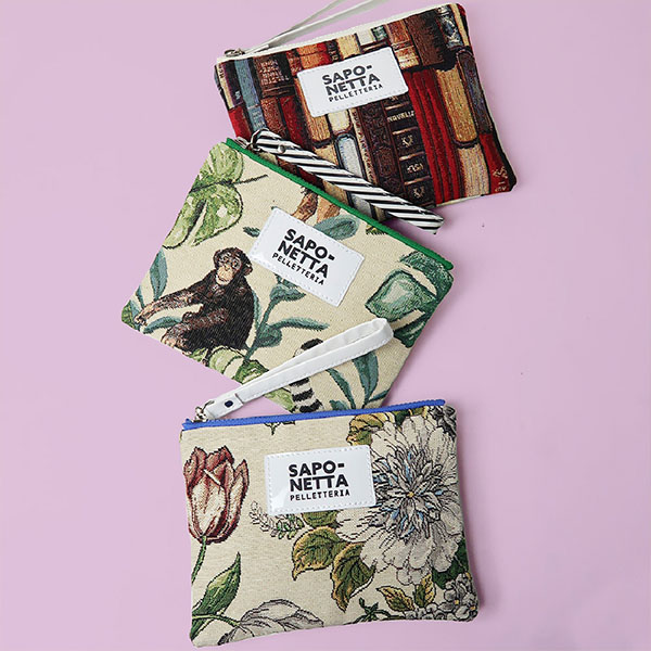 2007年、バッグ仲間からの誘いで原宿の小さなギャラリーで行われたグループ展に参加し、その時、ミラノ在住時代に趣味で集めたデッドストックの生地やアンティークパーツを使ってバッグを作ったのがオリジナルブランド「SAPONETTA(サポネッタ)」始まりです。